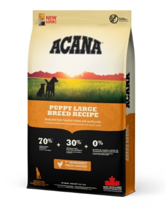 Acana Puppy Large Breed inclui, na sua formulação, frango criado ao ar livre, ovos de capoeira, linguado selvagem e fruta e vegetais amadurecidos ao sol. Produtos regionais e frescos de elevada qualidade para manter o seu cachorro feliz, saudável e forte.