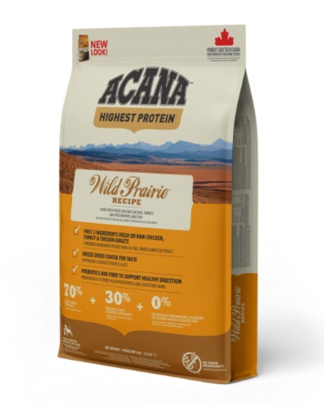Acana Wild Prairie inclui, na sua formulação, frango criado ao ar livre, peru, ovos inteiros e peixe fresco de captura selvagem. Alimento rico em proteínas da carne e com baixa quantidade de aditivos que promove as condições físicas ideais de todos os cães.