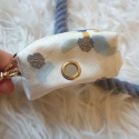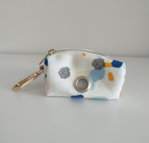 Bolsa para colocação de rolo de sacos de dejectos, com mosquetão que permite encaixe na trela.