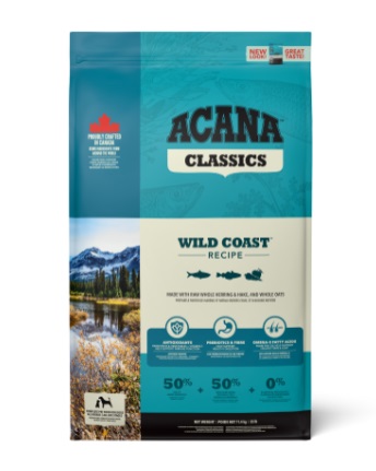 Acana Classics Wild Coast inclui, na sua formulação, peixe selvagem capturado de forma sustentável, estando, por isso, repleto de benefícios nutricionais e de sabor. Isento de grãos com elevado índice glicémico, este alimento Acana está repleto de proteína de peixe nutritiva e ácidos gordos ómega-3 que promovem as condições físicas ideais.