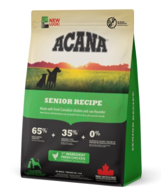 Acana Senior inclui, na sua formulação, ingredientes locais frescos, nomeadamente frango criado ao ar livre, ovos de capoeira, linguado selvagem e fruta e vegetais amadurecidos ao sol. Alimento cheio de sabor com baixo teor de calorias que promove as melhores condições para cães seniores.